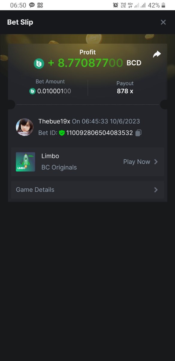 Maksypro Posted June 9, 2023 Share Posted June 9, 2023 Read Carefully Before Start To Hunt Daily Challenges #261 LIMBO Hunt : Win the highest multiplier Min Multiplier requirement 100x Min Level 4 ๏ธDuration Starting : Now End time : 23.59 UTC Time How to Join? Make screenshot + paste your bet link + UID or Profile link Any coin, with min bet 0.01 USD is allowed (jb/bb/bcl not allowed) Reward Prizes 1st Place.....$7 BCD 2nd Place.....$5 BCD 3rd Place.....$4 BCD 4th Place.....$3 BCD 5th Place.....$2 BCD ๐ต Winners will be announcing next day after Roll Point! 1 Link to comment Share on other sites More sharing options...
