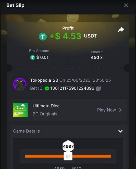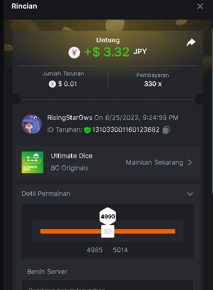 Maksypro Posted June 25, 2023 Share Posted June 25, 2023 Read Carefully Before Start To Hunt Forum Daily Challenges #277 Ultimate dice Hunt : Win the highest pay out Min Payout requirement 50x Min Level 4 ️Duration Starting : Now End time : 23.59 UTC Time How to Join? Make screenshot + paste your bet link + UID or Profile link Any coin, with min bet 0.01 USD is allowed (jb/bb/bcl not allowed) Reward Prizes 1st Place.....$7 BCD 2nd Place.....$5 BCD 3rd Place.....$4 BCD 4th Place.....$3 BCD 5th Place.....$2 BCD 🏵 Winners will be announcing next day after Roll Point! 1 Link to comment Share on other sites More sharing options...
