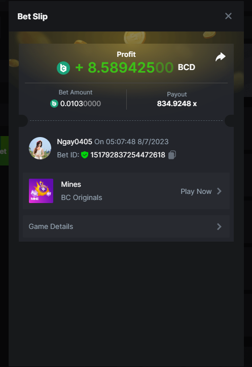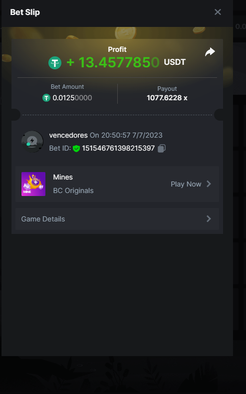 Moderator Giandreas Posted July 7, 2023 Moderator Share Posted July 7, 2023 Read Carefully Before Start To Hunt Forum Daily Challenges #289 Mines Hunt : Win the highest pay out Min Payout requirement 20x Min Level 4️Duration Starting : Now End time : 23.59 UTC Time How to Join? Make screenshot + paste your bet link + UID or Profile link Any coin, with min bet 0.01 USD is allowed (jb/bb/bcl not allowed)Reward Prizes 1st Place.....$7 BCD 2nd Place.....$5 BCD 3rd Place.....$4 BCD 4th Place.....$3 BCD 5th Place.....$2 BCD 🏵 Winners will be announcing next day after Roll Point! Link to comment Share on other sites More sharing options...