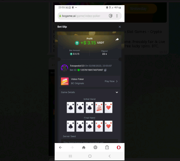 WK_ Posted August 2, 2023 Share Posted August 2, 2023 4 hours ago, Kikikom said: Read Carefully Before Start To Hunt Forum Daily Challenges #315 video poker Hunt : Win the highest pay out Min Payout 6x Min Level 4️Duration Starting : Now End time : 23.59 UTC Time How to Join? Make screenshot + paste your bet link + UID or Profile link Any coin, with min bet 0.01 USD is allowed (jb/bb/bcl not allowed)Reward Prizes 1st Place.....$7 BCD 2nd Place.....$5 BCD 3rd Place.....$4 BCD 4th Place.....$3 BCD 5th Place.....$2 BCD 🏵 Winners will be announcing next day after Roll Point! https://hash.game/#/sd/11F4L4FNVGN5EB UID: 1884076 Link to comment Share on other sites More sharing options...