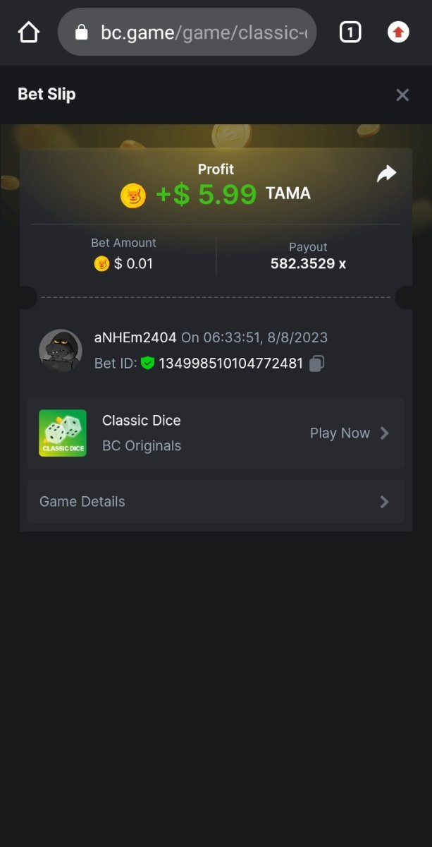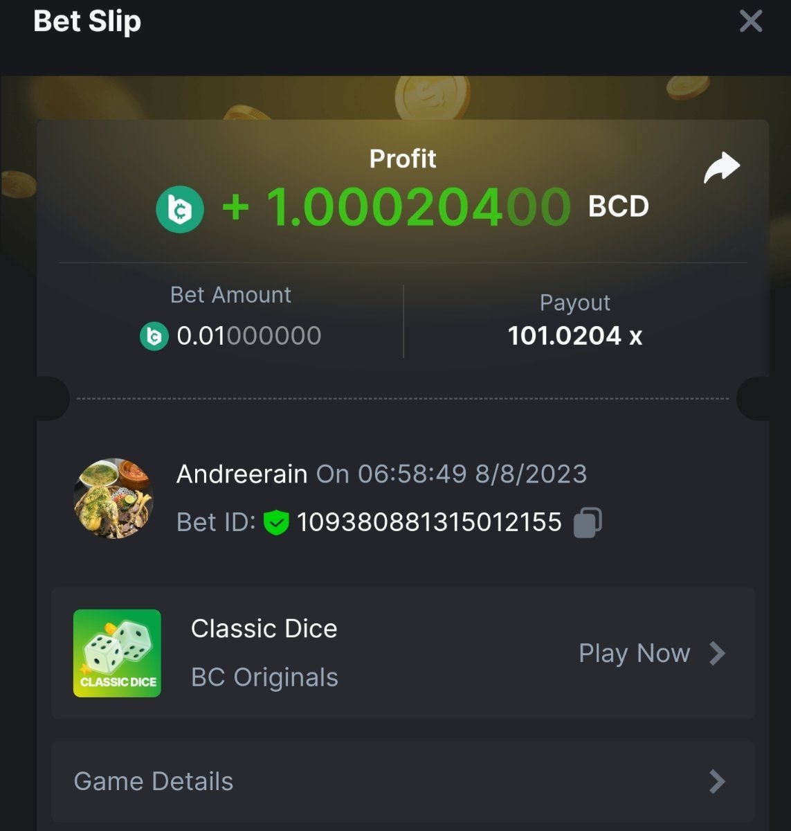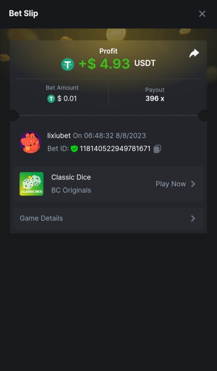 Moderator Giandreas Posted August 7, 2023 Moderator Share Posted August 7, 2023 Read Carefully Before Start To Hunt Forum Daily Challenges #320 Classic diceHunt : Ultimate Dice Win the highest pay out Min Payout 10x Min Level 4️Duration Starting : Now End time : 23.59 UTC Time How to Join? Make screenshot + paste your bet link + UID or Profile link Any coin, with min bet 0.01 USD is allowed (jb/bb/bcl not allowed)Reward Prizes 1st Place.....$7 BCD 2nd Place.....$5 BCD 3rd Place.....$4 BCD 4th Place.....$3 BCD 5th Place.....$2 BCD 🏵 Winners will be announcing next day after Roll Point! 1 Link to comment Share on other sites More sharing options...