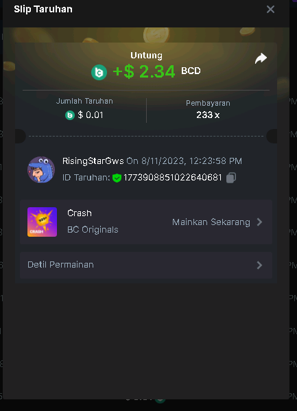 Moderator Giandreas Posted August 11, 2023 Moderator Share Posted August 11, 2023 (edited) Read Carefully Before Start To Hunt Forum Daily Challenges #324 CrashHunt : Crash Win the highest pay out Min Payout 10x Min Level 4️Duration Starting : Now End time : 23.59 UTC Time How to Join? Make screenshot + paste your bet link + UID or Profile link Any coin, with min bet 0.01 USD is allowed (jb/bb/bcl not allowed)Reward Prizes 1st Place.....$7 BCD 2nd Place.....$5 BCD 3rd Place.....$4 BCD 4th Place.....$3 BCD 5th Place.....$2 BCD 🏵 Winners will be announcing next day after Roll Point! Edited August 11, 2023 by Kikikom Link to comment Share on other sites More sharing options...