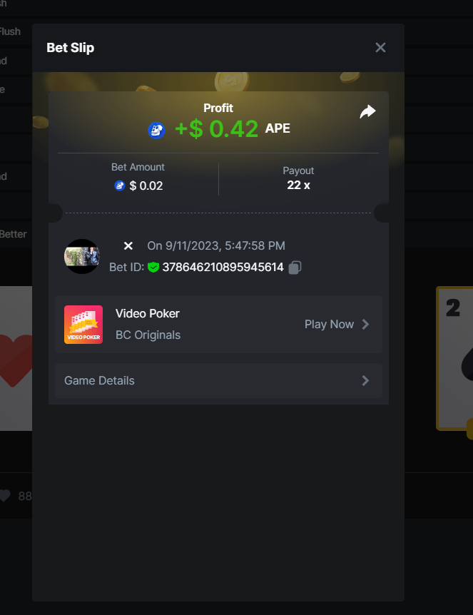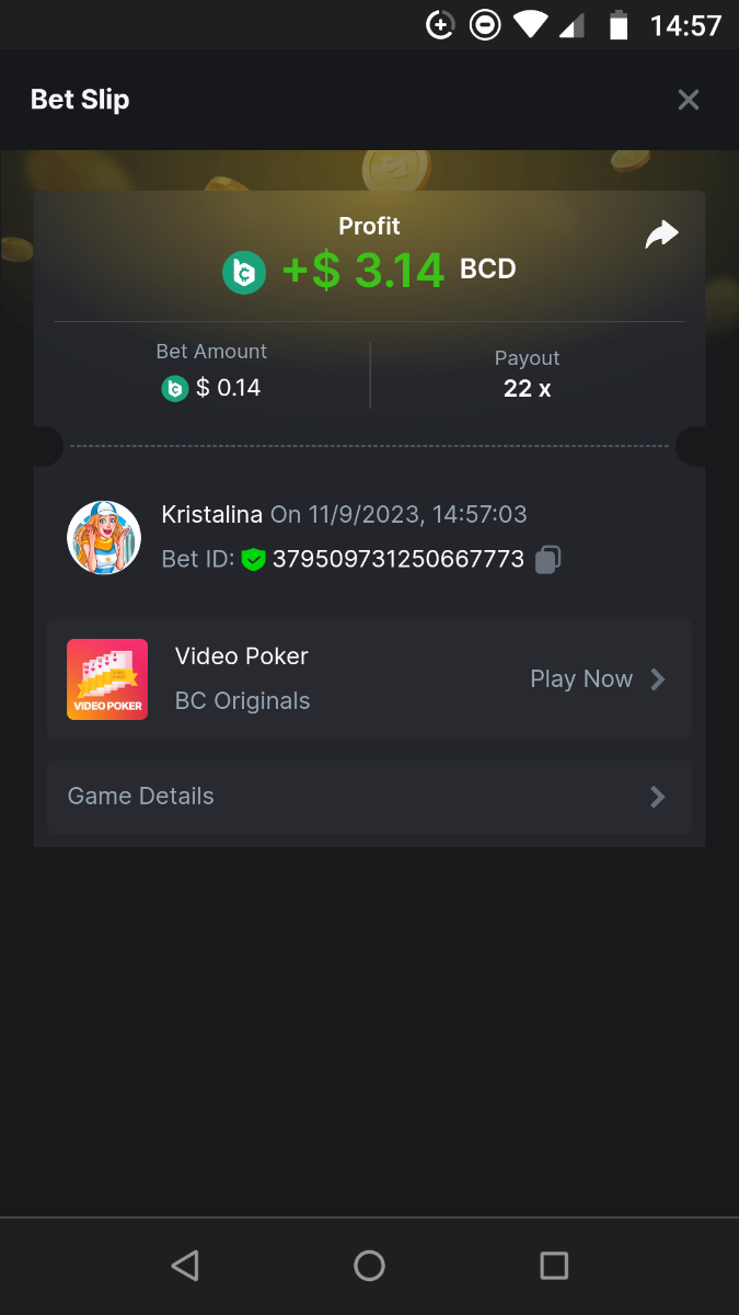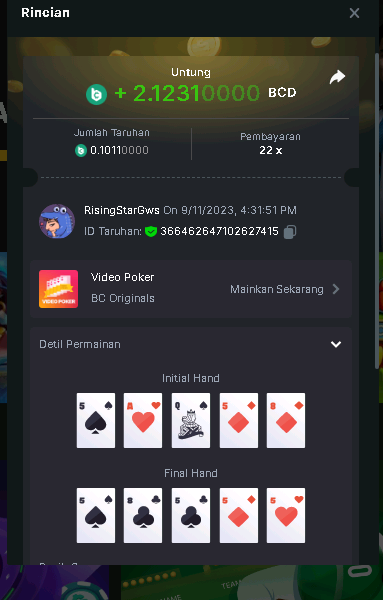 Moderator Giandreas Posted September 11, 2023 Moderator Share Posted September 11, 2023 Read Carefully Before Start To Hunt Forum Daily Challenges #355 Video PokerHunt : Video poker Win the highest pay out Min Payout : x6 Min Level 4️Duration Starting : Now End time : 23.59 UTC Time How to Join? Make screenshot + paste your bet link + UID or Profile link Any coin, with min bet 0.01 USD is allowed (jb/bb/bcl not allowed)Reward Prizes 1st Place.....$7 BCD 2nd Place.....$5 BCD 3rd Place.....$4 BCD 4th Place.....$3 BCD 5th Place.....$2 BCD 🏵 Winners will be announcing next day after Roll Point! 1 Link to comment Share on other sites More sharing options...