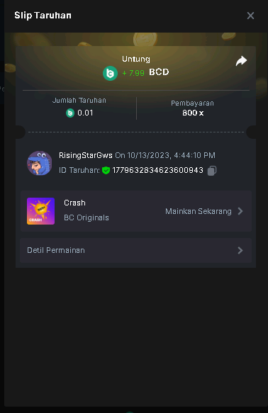 Moderator Giandreas Posted October 13, 2023 Moderator Share Posted October 13, 2023 Read Carefully Before Start To Hunt Forum Daily Challenges #386Hunt : Crash Win the highest pay out Min Payout : min x20 Min Level 4️Duration Starting : Now End time : 23.59 UTC Time How to Join? Make screenshot + paste your bet link + UID or Profile link Any coin, with min bet 0.01 USD is allowed (jb/bb/bcl not allowed)Reward Prizes 1st Place.....$7 BCD 2nd Place.....$5 BCD 3rd Place.....$4 BCD 4th Place.....$3 BCD 5th Place.....$2 BCD 🏵 Winners will be announcing next day after Roll Point! Link to comment Share on other sites More sharing options...