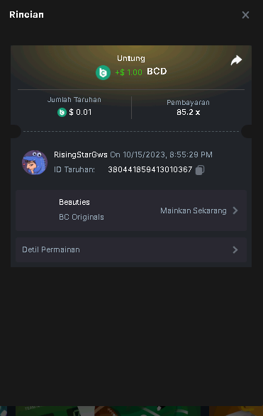 Moderator Giandreas Posted October 15, 2023 Moderator Share Posted October 15, 2023 Read Carefully Before Start To Hunt Forum Daily Challenges #388Hunt : oriental beauties Win the highest pay out Min Payout : min x20 Min Level 4️Duration Starting : Now End time : 23.59 UTC Time How to Join? Make screenshot + paste your bet link + UID or Profile link Any coin, with min bet 0.01 USD is allowed (jb/bb/bcl not allowed)Reward Prizes 1st Place.....$7 BCD 2nd Place.....$5 BCD 3rd Place.....$4 BCD 4th Place.....$3 BCD 5th Place.....$2 BCD 🏵 Winners will be announcing next day after Roll Point! Link to comment Share on other sites More sharing options...
