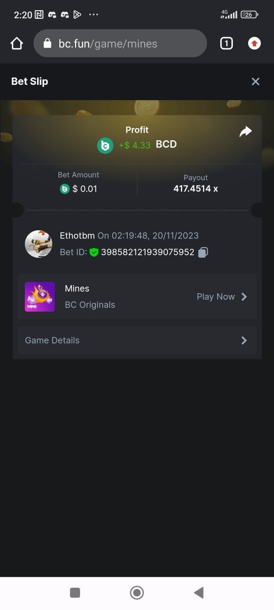 Moderator Giandreas Posted November 19, 2023 Moderator Share Posted November 19, 2023 Read Carefully Before Start To Hunt Forum Daily Challenges #423Hunt : Mines Win the highest pay out Min Payout : 50 Min Level 4 ️Duration Starting : Now End time : 23.59 UTC Time How to Join? Make screenshot + paste your bet link + UID or Profile link Any coin, with min bet 0.01 USD is allowed (jb/bb/bcl not allowed) Reward Prizes 1st Place.....$7 BCD 2nd Place.....$5 BCD 3rd Place.....$4 BCD 4th Place.....$3 BCD 5th Place.....$2 BCD 🏵 Winners will be announcing next day after Roll Point! 1 Link to comment Share on other sites More sharing options...