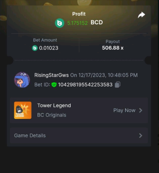 Moderator Giandreas Posted December 17, 2023 Moderator Share Posted December 17, 2023 Read Carefully Before Start To Hunt Forum Daily Challenges #451Hunt : Tower Legend Win the highest pay out Min Payout : x13 Min Level 10 ️Duration Starting : Now End time : 23.59 UTC Time How to Join? Make screenshot + paste your bet link + UID or Profile link Any coin, with min bet 0.01 USD is allowed (jb/bb/bcl not allowed) Reward Prizes 1st Place.....$7 BCD 2nd Place.....$5 BCD 3rd Place.....$4 BCD 4th Place.....$3 BCD 5th Place.....$2 BCD 🏵 Winners will be announcing next day after Roll Point! Link to comment Share on other sites More sharing options...