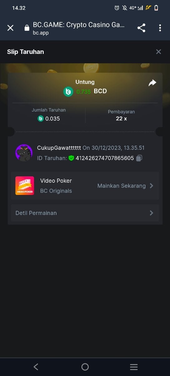 Moderator Giandreas Posted December 30, 2023 Moderator Share Posted December 30, 2023 Read Carefully Before Start To Hunt Forum Daily Challenges #464Hunt : Video Poker Win the highest pay out Min Payout : 6x Min Level 10 ️Duration Starting : Now End time : 23.59 UTC Time How to Join? Make screenshot + paste your bet link + UID or Profile link Any coin, with min bet 0.01 USD is allowed (jb/bb/bcl not allowed) Reward Prizes 1st Place.....$7 BCD 2nd Place.....$5 BCD 3rd Place.....$4 BCD 4th Place.....$3 BCD 5th Place.....$2 BCD 🏵 Winners will be announcing next day after Roll Point! Link to comment Share on other sites More sharing options...