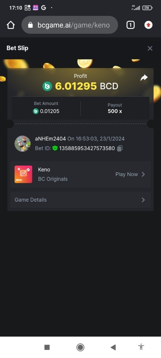 Moderator Giandreas Posted January 23, 2024 Moderator Share Posted January 23, 2024 Read Carefully Before Start To Hunt Forum Daily Challenges #488Hunt : Keno Win the highest pay out Min Payout : x90 Min Level 10️Duration Starting : Now End time : 23.59 UTC Time How to Join? Make screenshot + paste your bet link + UID or Profile link Any coin, with min bet 0.01 USD is allowed (jb/bb/bcl not allowed)Reward Prizes 1st Place.....$7 BCD 2nd Place.....$5 BCD 3rd Place.....$4 BCD 4th Place.....$3 BCD 5th Place.....$2 BCD 🏵 Winners will be announcing next day after Roll Point! Link to comment Share on other sites More sharing options...