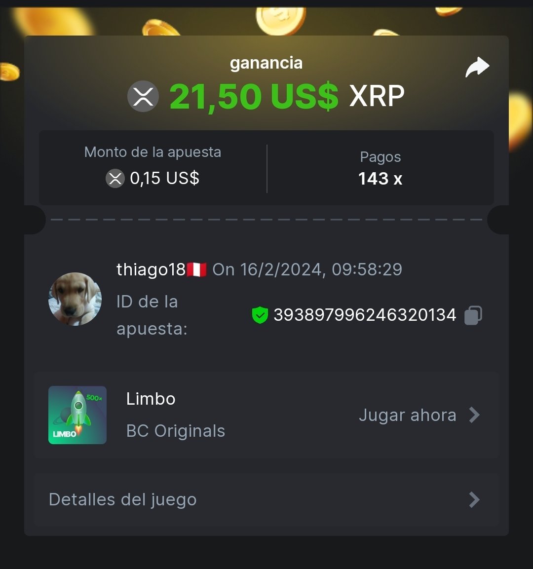 • In the same post, upload a screenshot of your win by clicking the game ID WITH VIEW IN USD mode ENABLED (accessible at the bottom of dropdown menu for your wallet up top. This way, we can ensure that your bet indeed met the minimum requirement at the time of placing it: