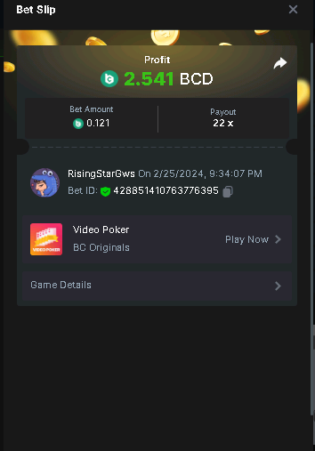 Moderator Giandreas Posted February 25, 2024 Moderator Share Posted February 25, 2024 Read Carefully Before Start To Hunt Forum Daily Challenges #521Hunt : Video Poker Win the highest pay out Min Payout : 6x Min Level 10 ️Duration Starting : Now End time : 23.59 UTC Time How to Join? Make screenshot + paste your bet link + UID or Profile link Any coin, with min bet 0.01 USD is allowed (jb/bb/bcl not allowed) Reward Prizes 1st Place.....$7 BCD 2nd Place.....$5 BCD 3rd Place.....$4 BCD 4th Place.....$3 BCD 5th Place.....$2 BCD 🏵 Winners will be announcing next day after Roll Point! Link to comment Share on other sites More sharing options...