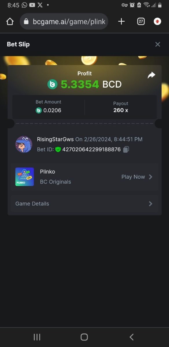 Moderator Giandreas Posted February 26, 2024 Moderator Share Posted February 26, 2024 Read Carefully Before Start To Hunt Forum Daily Challenges #522Hunt : Plinko Win the highest pay out Min Payout : 120x Min Level 10️Duration Starting : Now End time : 23.59 UTC Time How to Join? Make screenshot + paste your bet link + UID or Profile link Any coin, with min bet 0.01 USD is allowed (jb/bb/bcl not allowed)Reward Prizes 1st Place.....$7 BCD 2nd Place.....$5 BCD 3rd Place.....$4 BCD 4th Place.....$3 BCD 5th Place.....$2 BCD 🏵 Winners will be announcing next day after Roll Point! Link to comment Share on other sites More sharing options...
