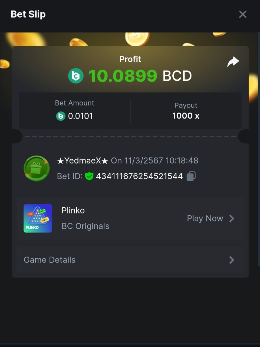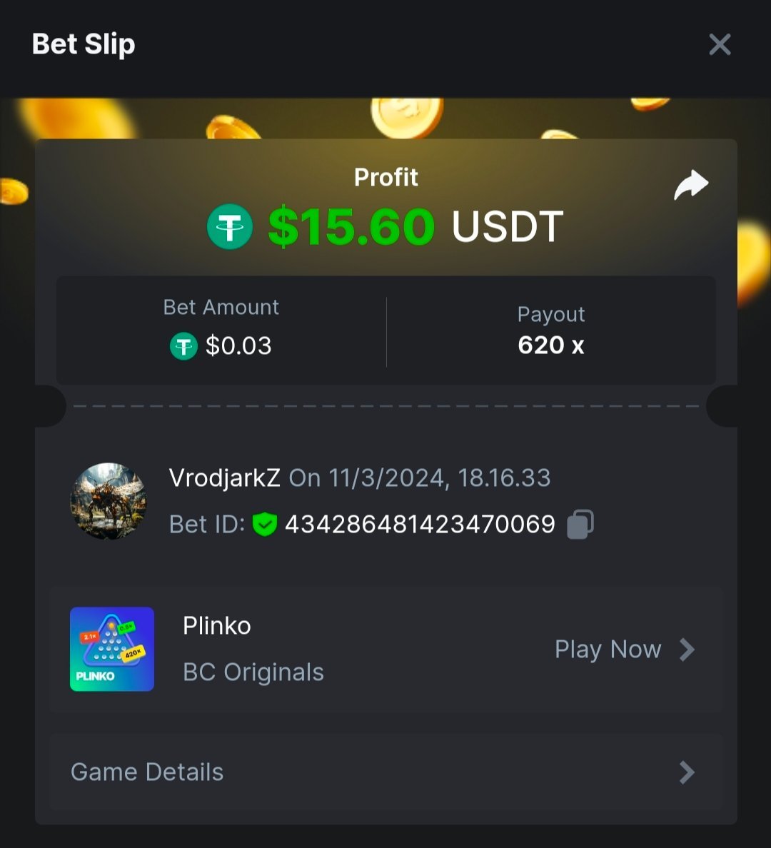 Moderator Giandreas Posted March 11, 2024 Moderator Share Posted March 11, 2024 Read Carefully Before Start To Hunt Forum Daily Challenges #536Hunt : Plinko Win the highest pay out Min Payout : 120x Min Level 10 ️Duration Starting : Now End time : 23.59 UTC Time How to Join? Make screenshot + paste your bet link + UID or Profile link Any coin, with min bet 0.01 USD is allowed (jb/bb/bcl not allowed) Reward Prizes 1st Place.....$7 BCD 2nd Place.....$5 BCD 3rd Place.....$4 BCD 4th Place.....$3 BCD 5th Place.....$2 BCD 🏵 Winners will be announcing next day after Roll Point! Link to comment Share on other sites More sharing options...