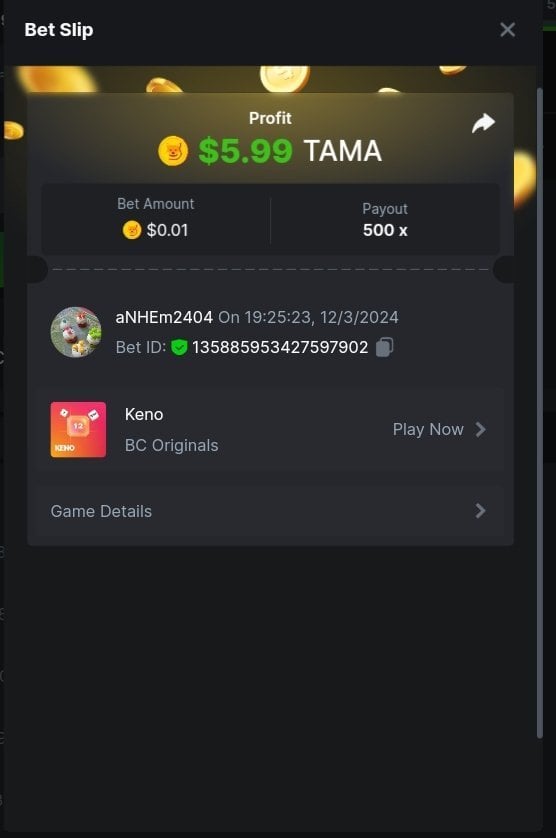 Moderator Giandreas Posted March 12, 2024 Moderator Share Posted March 12, 2024 Read Carefully Before Start To Hunt Forum Daily Challenges #537Hunt : Keno Win the highest pay out Min Payout : 90x Min Level 10 ️Duration Starting : Now End time : 23.59 UTC Time How to Join? Make screenshot + paste your bet link + UID or Profile link Any coin, with min bet 0.01 USD is allowed (jb/bb/bcl not allowed) Reward Prizes 1st Place.....$7 BCD 2nd Place.....$5 BCD 3rd Place.....$4 BCD 4th Place.....$3 BCD 5th Place.....$2 BCD 🏵 Winners will be announcing next day after Roll Point! Link to comment Share on other sites More sharing options...