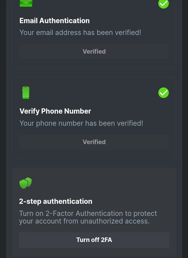 Faysggysmyb Posted April 2, 2024 Share Posted April 2, 2024 (edited) Easy. 1. https://bcgame.im/#/sd/11VWP2QTZ2NZSJ 2. https://bcgame.im/#/sd/11VWPQZ2IUISRF 3. Enable 2FA for your BC.Game account + Verify E-Mail & Phone Number: DONE Edited April 2, 2024 by Faysggysmyb Link to comment Share on other sites More sharing options...