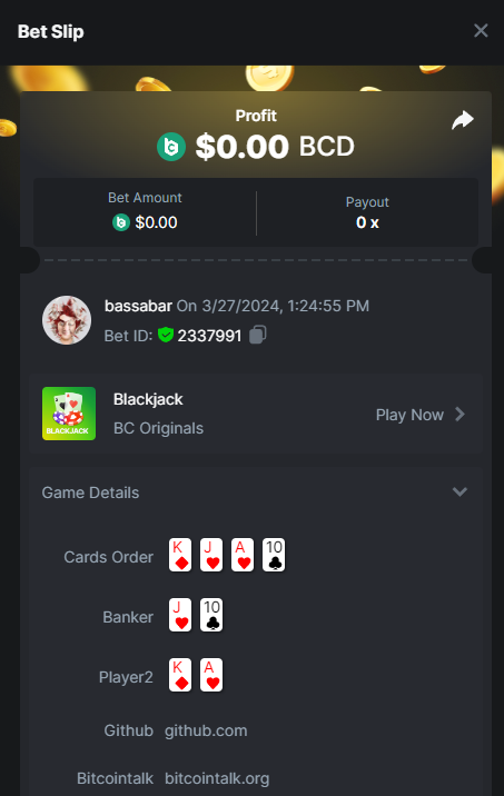 Event Team BCGame_Maxim Posted April 1, 2024 Author Event Team Share Posted April 1, 2024 On 3/30/2024 at 12:00 AM, bassabar said: Hi @BCGame_Maxim I assume if it hit crash 999x it is still valid for that point and that I dont have to do hashdice instead? It took allot of coins to chase and hit that, it wouldnt be fair if that would be taken away. I understand there are issues now, but its not fair to those who already hit it before the issues. Tbh its a no go to change rules while the event is already running. Hello, No worries, if you've already made a hit, your bet qualifies without the need to submit a Hash Dice bet. On 3/29/2024 at 5:08 PM, bassabar said: Hi @BCGame_Maxim, There is a task to hit a natural blackjack with red cards only. I hit it with a bet of 0.1$, though it shows not as a win or 0.1$ basebet. I checked with a few other people and they have the same issue of the bets not showing correctly. I tried different coins, show in different fiat valuta, etcetc, none of it helps to get it correct. My question is will this bet be accepted this way? And if not, what could I do to get it right? I posted the bill ID with the same gameid to show i placed it and won with 0.1$: Betlink: https://bc.game/#/sd/11VIK5D84FLS13 Our team will validate Blackjack bets using server data when preparing the results. 1 Link to comment Share on other sites More sharing options...
