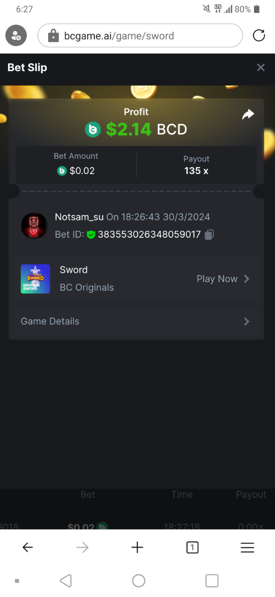 Moderator Giandreas Posted March 30, 2024 Moderator Share Posted March 30, 2024 Read Carefully Before Start To Hunt Forum Daily Challenges #555Hunt : Sword Win the highest pay out Min Payout : 20x Min Level 10 ️Duration Starting : Now End time : 23.59 UTC Time How to Join? Make screenshot + paste your bet link + UID or Profile link Any coin, with min bet 0.01 USD is allowed (jb/bb/bcl not allowed) Reward Prizes 1st Place.....$7 BCD 2nd Place.....$5 BCD 3rd Place.....$4 BCD 4th Place.....$3 BCD 5th Place.....$2 BCD 🏵 Winners will be announcing next day after Roll Point! Link to comment Share on other sites More sharing options...