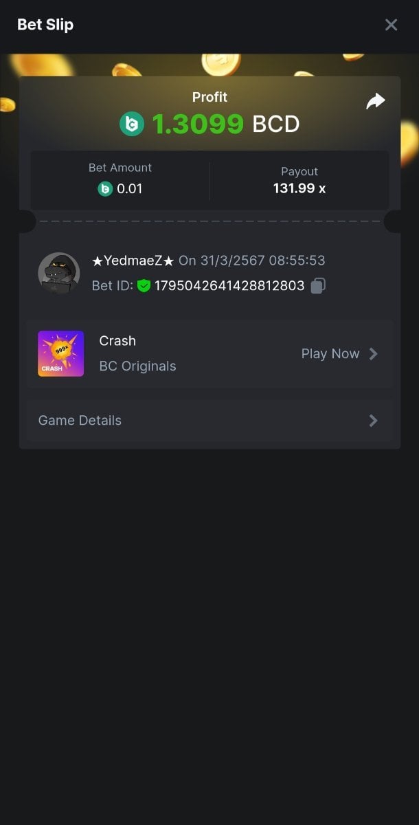 Moderator Giandreas Posted March 31, 2024 Moderator Share Posted March 31, 2024 Read Carefully Before Start To Hunt Forum Daily Challenges #556Hunt : Crash Win the highest pay out Min Payout : 20x Min Level 10 ️Duration Starting : Now End time : 23.59 UTC Time How to Join? Make screenshot + paste your bet link + UID or Profile link Any coin, with min bet 0.01 USD is allowed (jb/bb/bcl not allowed) Reward Prizes 1st Place.....$7 BCD 2nd Place.....$5 BCD 3rd Place.....$4 BCD 4th Place.....$3 BCD 5th Place.....$2 BCD 🏵 Winners will be announcing next day after Roll Point! Link to comment Share on other sites More sharing options...