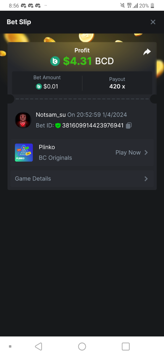 Moderator Giandreas Posted April 1, 2024 Moderator Share Posted April 1, 2024 Read Carefully Before Start To Hunt Forum Daily Challenges #557Hunt : Plinko Win the highest pay out Min Payout : 130x Min Level 10 ️Duration Starting : Now End time : 23.59 UTC Time How to Join? Make screenshot + paste your bet link + UID or Profile link Any coin, with min bet 0.01 USD is allowed (jb/bb/bcl not allowed) Reward Prizes 1st Place.....$7 BCD 2nd Place.....$5 BCD 3rd Place.....$4 BCD 4th Place.....$3 BCD 5th Place.....$2 BCD 🏵 Winners will be announcing next day after Roll Point! Link to comment Share on other sites More sharing options...