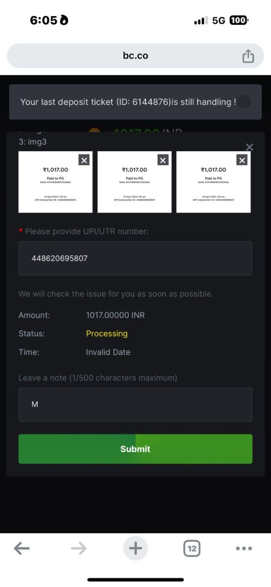 Dhifabmuykyb Posted May 9, 2024 Share Posted May 9, 2024 Deposit of 500 on 6may till now single amount of this transaction will credit on my wallet ur live support is full of errors no one will help this game is fraud Link to comment Share on other sites More sharing options...