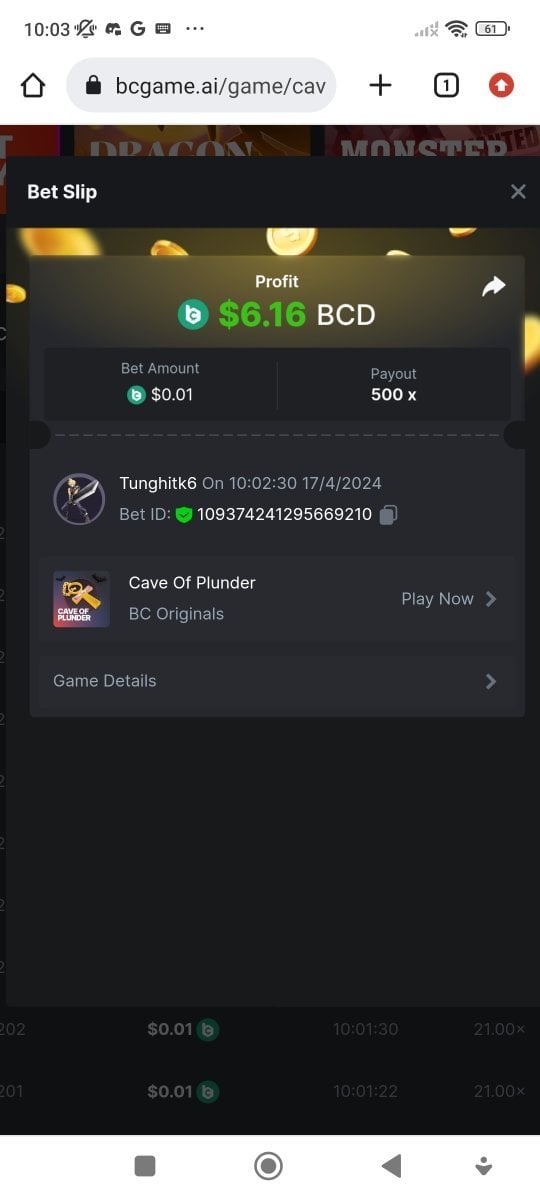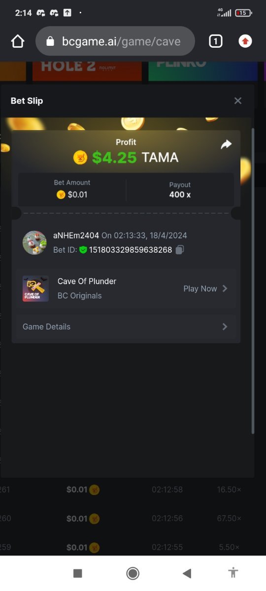 Moderator Giandreas Posted April 17, 2024 Moderator Share Posted April 17, 2024 Read Carefully Before Start To Hunt Forum Daily Challenges #573Hunt : Cave of Plunder Win the highest pay out Min Payout : 17x Min Level 10️Duration Starting : Now End time : 23.59 UTC Time How to Join? Make screenshot + paste your bet link + UID or Profile link Any coin, with min bet 0.01 USD is allowed (jb/bb/bcl not allowed)Reward Prizes 1st Place.....$7 BCD 2nd Place.....$5 BCD 3rd Place.....$4 BCD 4th Place.....$3 BCD 5th Place.....$2 BCD 🏵 Winners will be announcing next day after Roll Point! 1 Link to comment Share on other sites More sharing options...