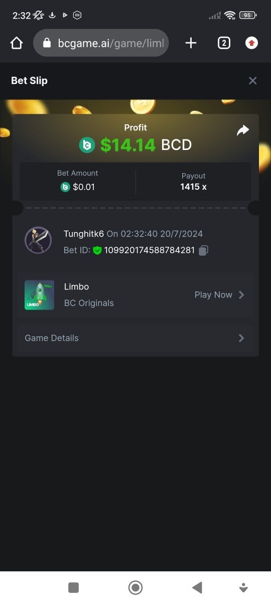 Moderator Giandreas Posted July 21, 2024 Author Moderator Share Posted July 21, 2024 List of winner daily Forum challenges #667 1st zeroreturn 2001x 20,63…….. Win 7bcd 2nd herrycai 1500x 14,99……..Win 5bcd 3rd Tunghitk6 1415x 14,14…….. Win 4bcd 4th RisingStarGws 666x 6,65……..Win 3bcd 5th Notsam_su 558x 5,57……..Win 2bcd Please,don't forget UID for your post How to claim your reward : These steps help us faster to verify. Step by step how to claim : DM/PM Me (forum) and Telegram @Kikikom_bcgame And wait for accepting.( If you accepted and didn't answer for 5 min you will be removed and have to join again) Share the screenshot Share the win bet link (daily challenges) Share UID or Profile linkWait for a response Link to comment Share on other sites More sharing options...