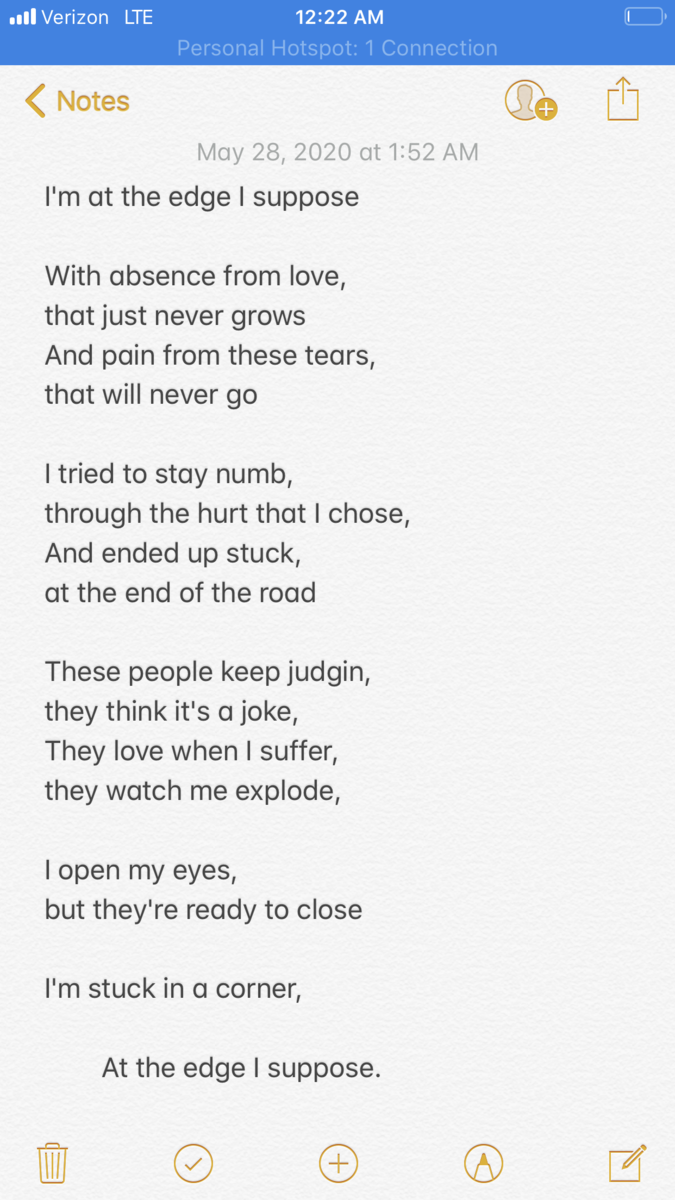 Ladyy Posted December 16, 2021 Share Posted December 16, 2021 I like your style of rhyming in all these. And - I know this is just an expression of how you were feeling at the time - but it must be said ... just in case. Never ever hurt yourself. There is always a reason to live. ♥ Keep writing. This is where you shine. █╬ ███ ██▄ █╬█ █╬█ █╬ █▄█ █╬█ █▄█ █▄█ ██ █╬█ ███ ╬█╬ ╬█╬ Link to comment Share on other sites More sharing options...