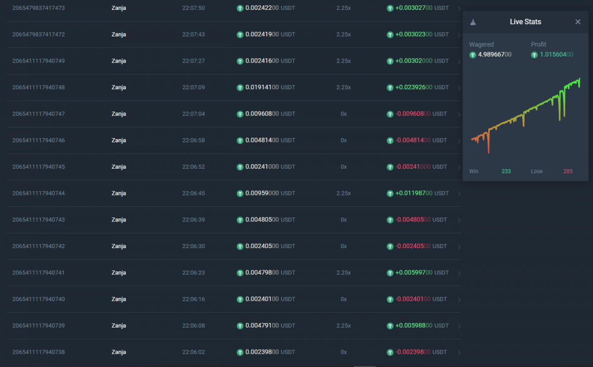 Zanja Posted September 21, 2020 Share Posted September 21, 2020 This is not a strategy for winning big and fast (probably). I'm new to this site and have only been here for a few weeks. I'm a student, so I can't really afford to deposit a lot of money. The only deposits I've made is what I have earned through cctip on twitter. For me this means that I'm trying to make the most of what little coins I have, and because of that I've been trying to work out a system that allows me to win a little and gain VIP levels without it costing too much. Yesterday I came up with a system that seems to be working fairly well. Granted that I have only been trying it for 2 days now. It's basically an inverted martingale. Yesterday I started with 0.3 USDT, and the betting goes like this. Start off with max bet (but don't roll!). Then reduce the bet with half 10 times. It'll look like this 0.3 0.15 0.075 0.0375 0.01875 0.009375 0.004688 0.002344 0.001172 0.000586 0.000293 <<== This will be your first bet Yesterday I used x2.34 and today I tried x2.25. Personally I think betting x2.25 worked better. So you bet 0.000293 x2.25 and lets say you lose, you will have 0.299707 left. Once again start at the max bet (0.299707) and this time reduce the bet with half 9 times. Like this 0.299707 0.149854 0.074927 0.037464 0.018732 0.009366 0.004683 0.002342 0.001171 0.000586 <<== This will be your second bet You make this second bet at 0.000586 x2.25, and lets say you win this time then you will make 0.00732 profit and you will now have 0.307027 Now that you've won, you start once again from max bet and reduce the bet by half 10 times. Like this 0.307027 0.153514 0.076757 0.038379 0.019190 0.009595 0.004798 0.002399 0.001200 0.000600 0.000300 <<== This is your next bet You make the bet 0.000300 at x2.25 and lets say you win now, you will get a profit at 0.000375 which makes your total 0.307402. Now because you won at your first bet, your next bet will once again be your total (0.307402) reduced by half 10 times (so the bet will be 0.000301) Basically every time you lose you divide your max bet by half one less time, and every time you win you go back to dived your max bet by half 10 times. Obviously the more you win the higher your bets will become. When I started yesterday and my max bet was 0.3 my base bet was 0.000293. Today I got 2.5 USDT which makes my base bet 0.002442. The advantage of this strategy compared to the martingale is the exponential growth of the bets in martingale. If you catch an unlucky streak you might not have the funds to continue betting. I've also made a habit of changing the seed fairly often, especially if I win 3-5 times in a row. I assume you can go higher than x2.25, but if you do I would advice that you also divide your max bet with more than 10 times. I hope this expanation is at least clear enough. If not, feel free to ask and I'll try to clarify. Here's some screenshots from yesterday and today I'm a psychology student from Sweden. I'm here to analyze your bad decisions. Link to comment Share on other sites More sharing options...