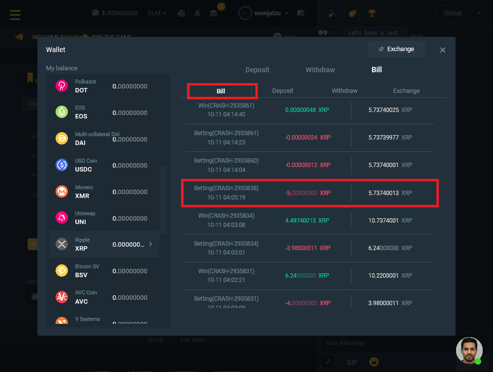 svenjatzu Posted October 11, 2020 Author Share Posted October 11, 2020 now theres a litle fail in this stolen 5 xrp not by me made bet. officially it crashed at 1.02. but have a look here. user: Authentic Carlstrom betid: 16321705 cashoued out this round at 1.96 like 7 other users with betids: 16321702 16321687 16321691 16321701 16321698 and others. so how is it possible that a bet with 5 xrp that i didnt place is crashed at 1.02 while others cashout at the same round at 1.96 ? i wrote to the customer service about this and what he wrote is really aboslutely in no acceptable order. have a loot yourself. you be abled to stop laughing. Link to comment Share on other sites More sharing options...