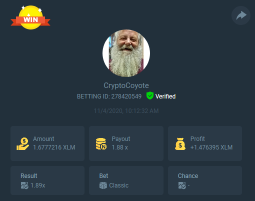 CryptoCoyote Posted November 4, 2020 Share Posted November 4, 2020 I would like to suggest a contest idea - the Close Call Contest. Here's my Close Call - I cashed out at 1.88x and it crashed at 1.89x - the should be a prize for the highest multiplier with the closest call. So if someone go 123.5x and it crashed out at 124x that would obviously beat my close call because of the much higher risk to get the higher multiplier. Link to comment Share on other sites More sharing options...