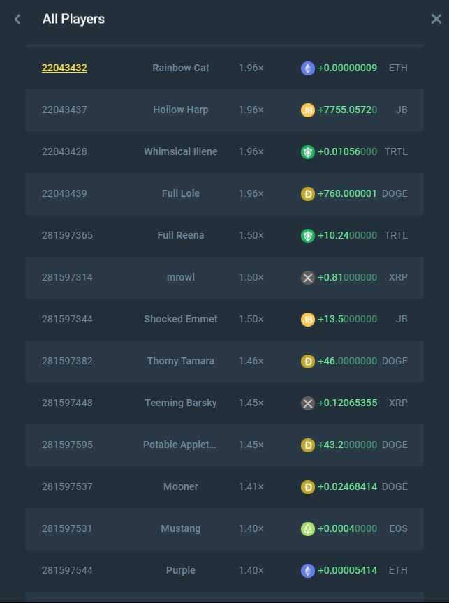 挑戰目標:下注金額依照上表規定,挑戰成為最後一名成功逃跑的幸運兒 (包含與其它玩家並列最後同時成功逃跑者),並且你的逃跑倍數不得高於 5x (含)