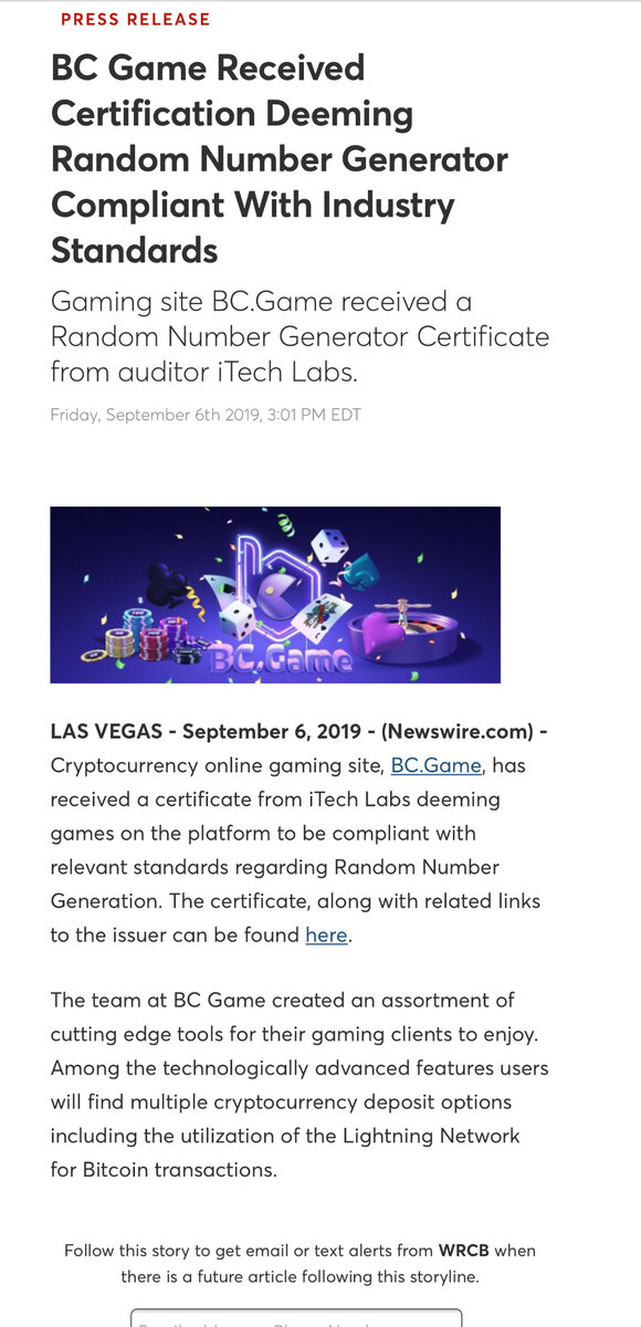 BC.Game Received Certification Deeming RNG Compliant With Industry Standards