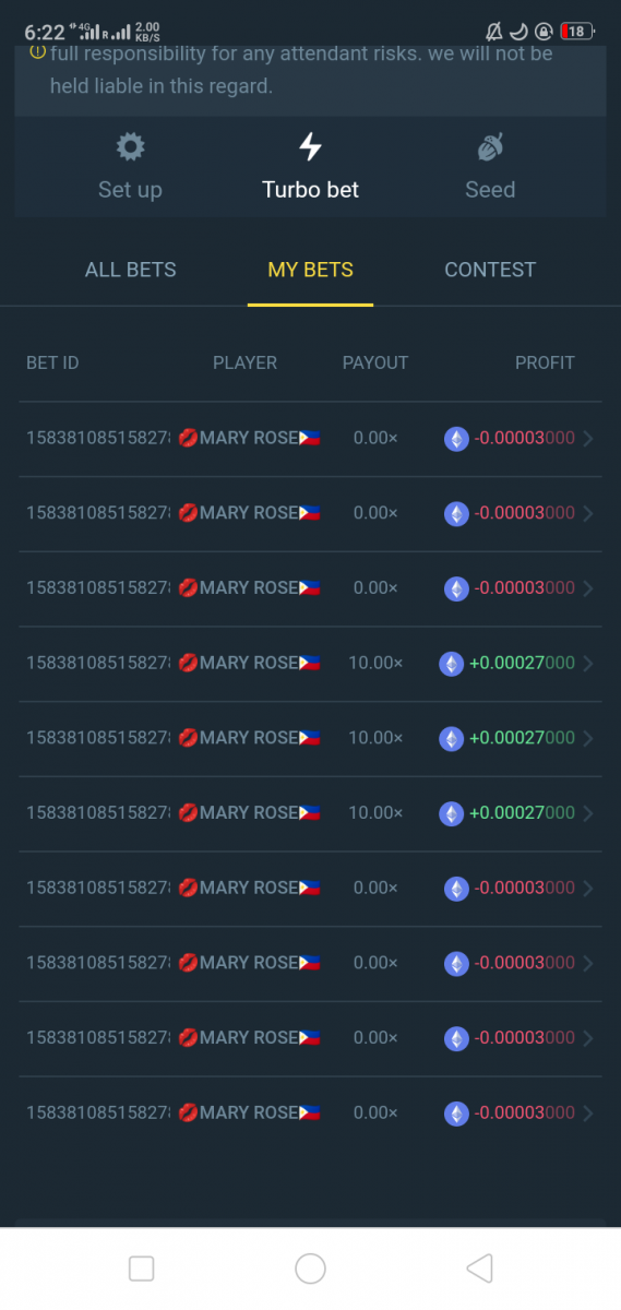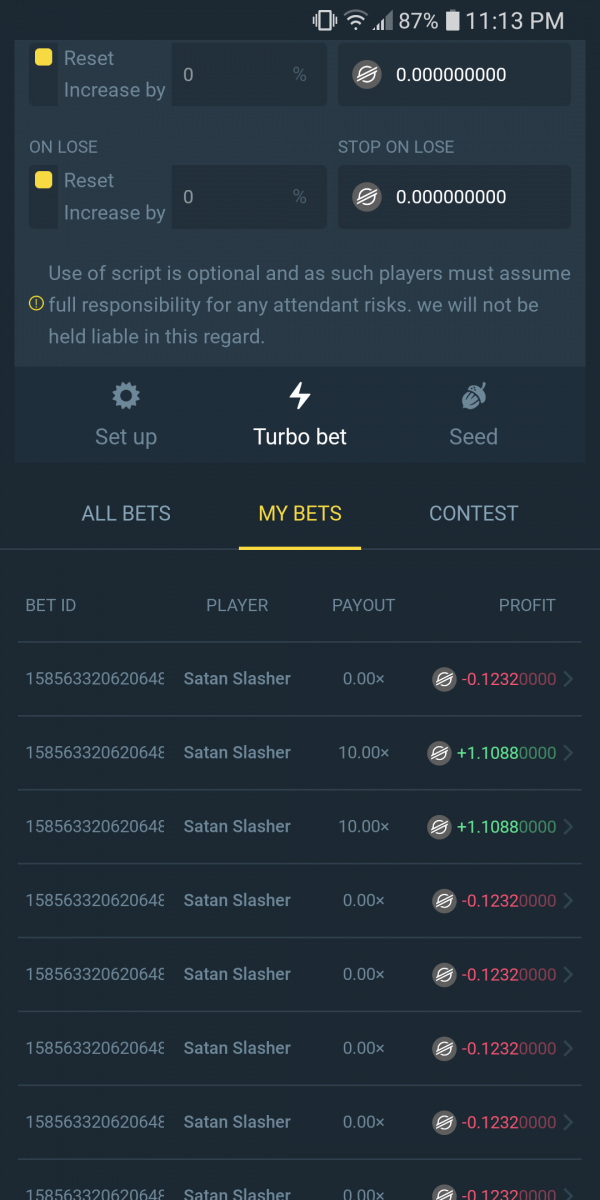luntik777 Posted March 11, 2021 Share Posted March 11, 2021 ID bet : 6223407671431 6223407671430 6223407671429 6223407671428 I caught 4 in a row Amount : 0.06010000 USDT  the screenshot does not open BC_Panda  I sent screenchot it to you  PM and Telegramm  Link to comment Share on other sites More sharing options...