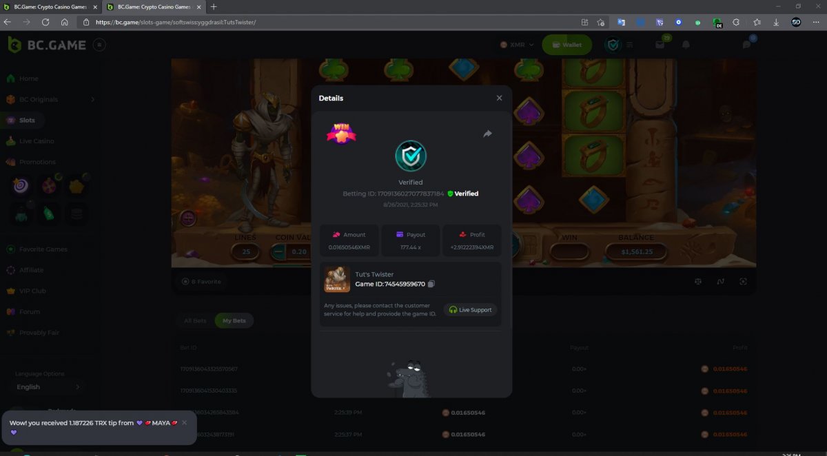 Hi @Richenell5 the classic dice is not valid for this challenge. Only BC.Game's slot Egyptian Adventure (BC Originals) and any one of the below-listed games, both need to be shared in the same message.