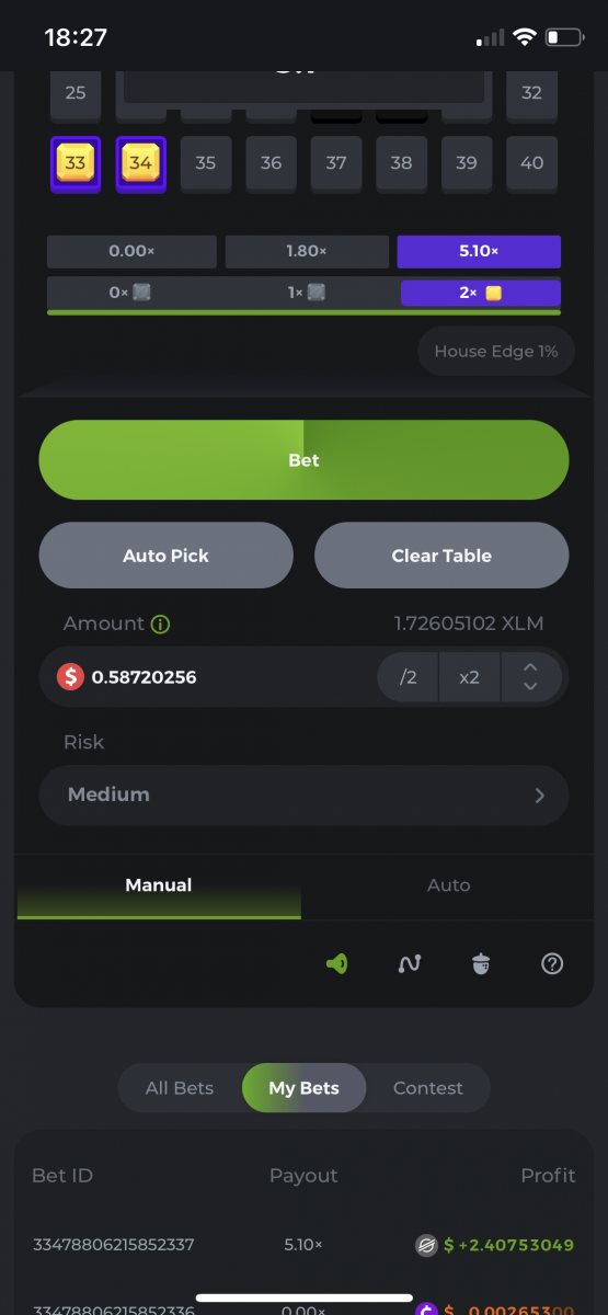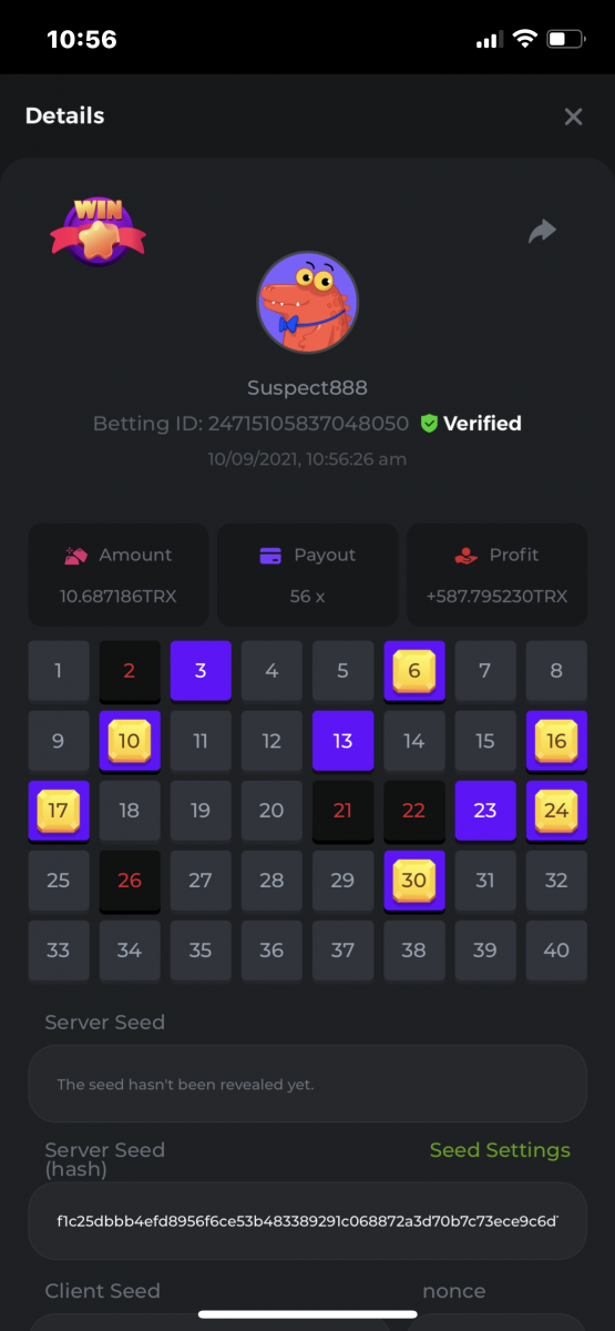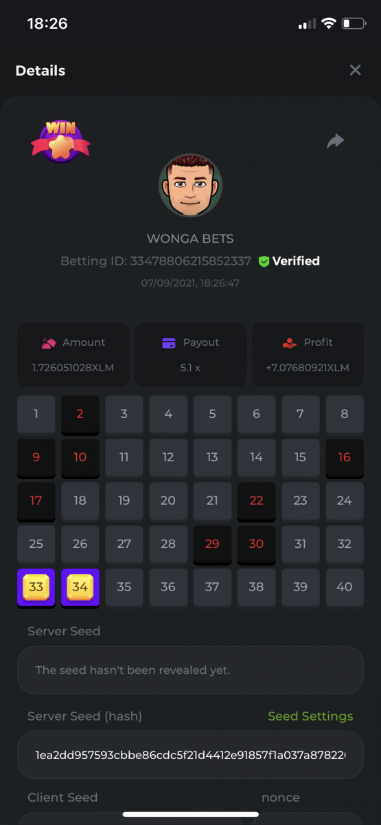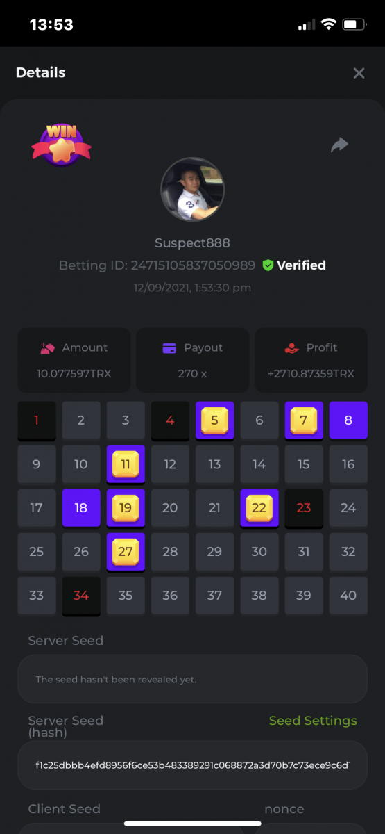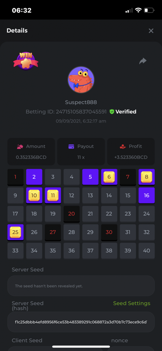 Mongthehung Posted September 7, 2021 Share Posted September 7, 2021 13 hours ago, digitaldash said: TOP TIER CHALLENGE #3 Starts: 06:00, September 7 GMTEnds: 06:00, September 14 GMT Welcome back! You may be wondering why this challenge is only $2,000. We'll be having two separate challenges going on this week, with the second part coming very soon so keep a lookout for that! This week, we have a KENO challenge! What's the Challenge? Complete as many of the following 20 payouts on either KENO Multiplayer or KENO Single Player. You must hit a MINIMUM of 5 of the payouts to qualify! 5.10x - 11x - 17.1x - 26x - 30x - 56x - 67x - 81.5x - 100x - 180x - 259x - 270x - 390x - 450x - 500x - 600x - 710x - 800x - 900x - 1000x Each payout you hit above counts as 1 point, with a maximum of 20 points. If there is a tie, the player with the higher total bet amount (in USD) shall be the winner. The payouts must be EXACT hits (56x and 50x are not the same) - if you can't find a payout, try changing the risk level to medium or high. Minimum VIP Tier Must be VIP10 or higher in order to enter this challenge. Minimum Bet Size $0.35 equivalent (please check the individual coin amounts below) Eligible Coins All coins are eligible (excluding JB) Available Prizes 1st Place......$500 2nd Place.....$375 3rd Place.....$250 4th Place......$125 5th-25th......$25 Participation Pool.......$250 split equally How to Enter To enter, copy the bet ID of the bet you'd like to submit Once you've copied it, post it as a reply to this thread like so: Betting ID: 1708854428417660423 In the same post, upload a screenshot of your win by clicking the game ID WITH VIEW IN USD mode ENABLED (accessible at the bottom of dropdown menu for your wallet up top. This way, we can ensure that your bet indeed met the minimum requirement at the time of placing it: Please combine all of your hits together in a SINGLE post. Edit, don't create a new post. Bets must be posted within 24 hours of placing bet in order to keep things fair for everyone. Bets must be made during the specified time windows stated above. This thread will lock automatically when the time period is over. One (1) entry per household. Anyone found to be attempting to win multiple prizes will be disqualified from this challenge as well as all future challenges. Furthermore, you will go on the WALL OF SHAME for all to see that you are a scam! Failure to follow instructions will result in your submission being null and void. And let the races begin! Good luck everyone, look forward to seeing who comes out on top this week Link to comment Share on other sites More sharing options...