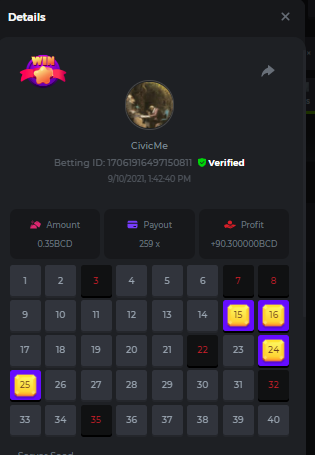 BCDash Posted September 7, 2021 Share Posted September 7, 2021 TOP TIER CHALLENGE #3 Starts: 06:00, September 7 GMTEnds: 06:00, September 14 GMT Welcome back! You may be wondering why this challenge is only $2,000. We'll be having two separate challenges going on this week, with the second part coming very soon so keep a lookout for that! This week, we have a KENO challenge! What's the Challenge? Complete as many of the following 20 payouts on either KENO Multiplayer or KENO Single Player. You must hit a MINIMUM of 5 of the payouts to qualify! 5.10x - 11x - 17.1x - 26x - 30x - 56x - 67x - 81.5x - 100x - 180x - 259x - 270x - 390x - 450x - 500x - 600x - 710x - 800x - 900x - 1000x Each payout you hit above counts as 1 point, with a maximum of 20 points. If there is a tie, the player with the higher total bet amount (in USD) shall be the winner. The payouts must be EXACT hits (56x and 50x are not the same) - if you can't find a payout, try changing the risk level to medium or high. Minimum VIP Tier Must be VIP10 or higher in order to enter this challenge. Minimum Bet Size $0.35 equivalent (please check the individual coin amounts below) Eligible Coins All coins are eligible (excluding JB) Available Prizes 1st Place......$500 2nd Place.....$375 3rd Place.....$250 4th Place......$125 5th-25th......$25 Participation Pool.......$250 split equally How to Enter To enter, copy the bet ID of the bet you'd like to submit Once you've copied it, post it as a reply to this thread like so: Betting ID: 1708854428417660423 In the same post, upload a screenshot of your win by clicking the game ID WITH VIEW IN USD mode ENABLED (accessible at the bottom of dropdown menu for your wallet up top. This way, we can ensure that your bet indeed met the minimum requirement at the time of placing it: Please combine all of your hits together in a SINGLE post. Edit, don't create a new post. Bets must be posted within 24 hours of placing bet in order to keep things fair for everyone. Bets must be made during the specified time windows stated above. This thread will lock automatically when the time period is over. One (1) entry per household. Anyone found to be attempting to win multiple prizes will be disqualified from this challenge as well as all future challenges. Furthermore, you will go on the WALL OF SHAME for all to see that you are a scam! Failure to follow instructions will result in your submission being null and void. And let the races begin! Good luck everyone, look forward to seeing who comes out on top this week "Life is the biggest scam of all, because eventually you die." - digitaldash Link to comment Share on other sites More sharing options...
