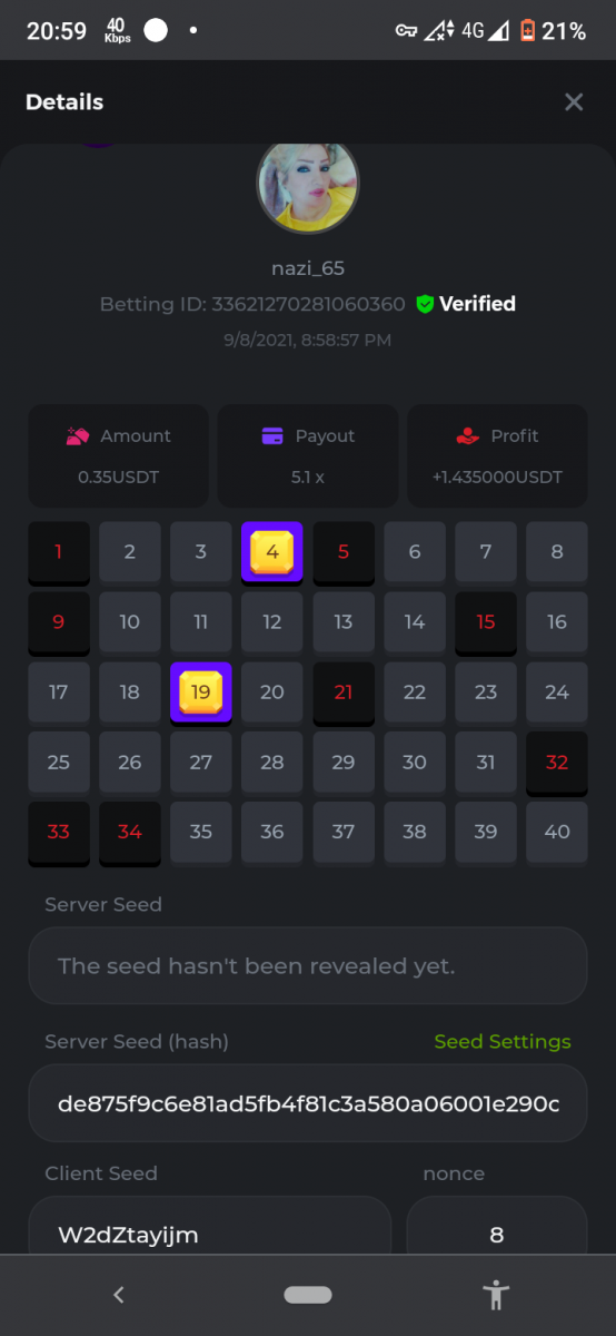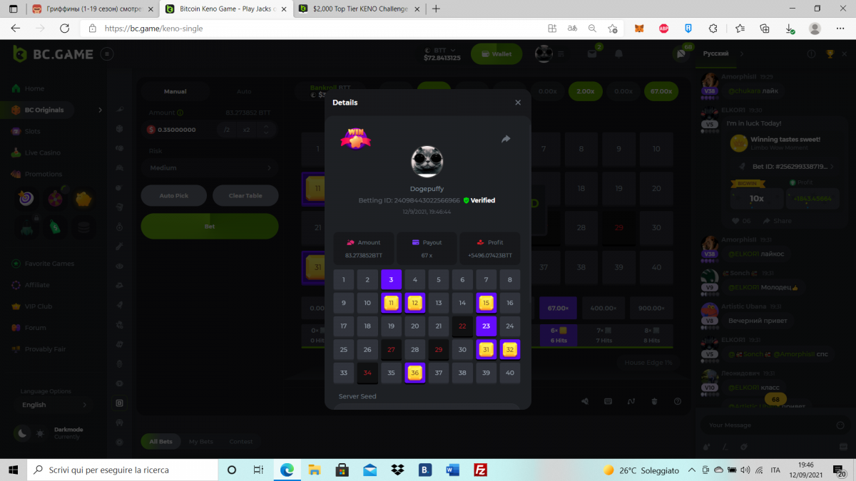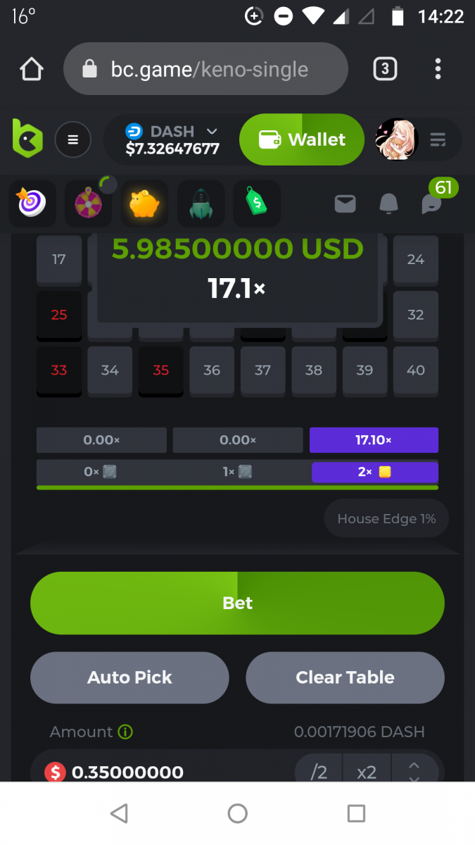 Nathsman Posted September 11, 2021 Share Posted September 11, 2021 On 6/9/2021 at 22:19, digitaldash said: DESAFÍO DE NIVEL SUPERIOR # 3 Inicio: 06:00, 7 de septiembre GMT Finaliza: 06:00, 14 de septiembre GMT ¡Bienvenido de nuevo! Quizás se pregunte por qué este desafío cuesta solo $ 2,000. Tendremos dos desafíos separados esta semana, y la segunda parte llegará muy pronto, ¡así que estén atentos a eso! ¡Esta semana, tenemos un desafío KENO! ¿Cuál es el desafío ? Complete la mayor cantidad de los siguientes 20 pagos en el modo multijugador de KENO o en el modo para un jugador de KENO . ¡Debes alcanzar un MÍNIMO de 5 de los pagos para calificar! 5.10x - 11x - 17.1x - 26x - 30x - 56x - 67x - 81.5x - 100x - 180x - 259x - 270x - 390x - 450x - 500x - 600x - 710x - 800x - 900x - 1000x Cada pago obtenido arriba cuenta como 1 punto, con un máximo de 20 puntos. Si hay un empate, el jugador con la apuesta total más alta (en USD) será el ganador. Los pagos deben ser resultados EXACTOS (56x y 50x no son lo mismo). Si no puede encontrar un pago, intente cambiar el nivel de riesgo a medio o alto. Nivel VIP mínimo Debe ser VIP10 o superior para participar en este desafío. Tamaño mínimo de la apuesta Equivalente a $ 0.35 (verifique los montos de monedas individuales a continuación) Monedas elegibles Todas las monedas son elegibles (excepto JB) Premios disponibles 1er lugar ...... $ 500 2do lugar ..... $ 375 3er puesto. .... $ 250 4to lugar ...... $ 125 5 ° al 25 ° ...... $ 25 Fondo de participación ... $ 250 dividido en partes iguales Cómo entrar Para participar, copie el ID de apuesta de la apuesta que le gustaría enviar. Una vez que lo haya copiado, publíquelo como respuesta a este hilo de la siguiente manera: ID de apuesta : 1708854428417660423 En la misma publicación, cargue una captura de pantalla de su ganancia haciendo clic en la ID del juego CON VISTA EN modo USD HABILITADO (accesible en la parte inferior del menú desplegable de su billetera en la parte superior. De esta manera, podemos asegurarnos de que su apuesta realmente cumplió con el requisito mínimo al momento de colocarlo: Combine todos sus éxitos en una SOLA publicación. Edita, no crees una nueva publicación. Las apuestas deben publicarse dentro de las 24 horas posteriores a la realización de la apuesta para que las cosas sean justas para todos. Las apuestas deben realizarse durante las ventanas de tiempo especificadas anteriormente. Este hilo se bloqueará automáticamente cuando termine el período de tiempo. Una (1) entrada por hogar . Cualquiera que intente ganar varios premios será descalificado de este desafío, así como de todos los desafíos futuros. Además, ¡irás al MURO DE LA VERGÜENZA para que todos vean que eres una estafa! Si no sigue las instrucciones, su envío será nulo y sin efecto. ¡Y que empiecen las carreras! Buena suerte a todos, esperamos ver quién gana esta semana. Link to comment Share on other sites More sharing options...