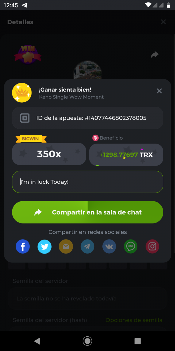 Intentado para el reto del keno y salí premiado
