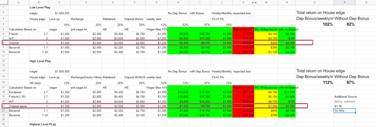 It’s not my problem when I play a game and lose according to the house edge but all the rakeback/reload/deposit/weekly/monthly bonus given back to me ended up yielding over 98-115% of house edge. That’s the casino’s decision and who am I to question it. Bonuses are often offered as a loss leader in a competitive business to make customers switch provider, and I can assure you I made plenty to switch. These stuff you are giving out are not optional, they are given to you. I have no say in the amount of weekly bonus, monthly bonus they will give, I have no say deposit bonus as it is automatically applied. Recharge/reload calculations are not disclosed anywhere. Those are unknown to me and can be changed at any time by them. (Spreadsheet available for math part)