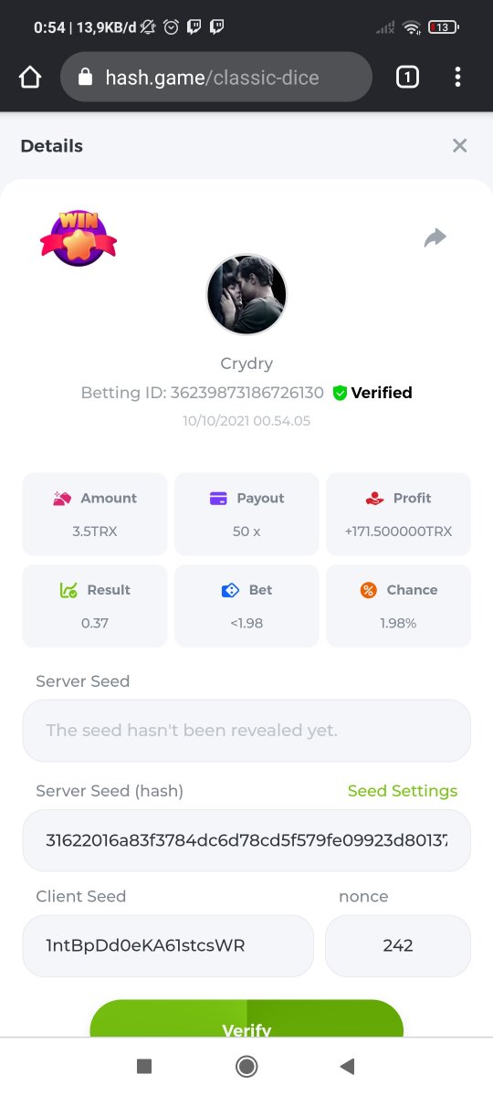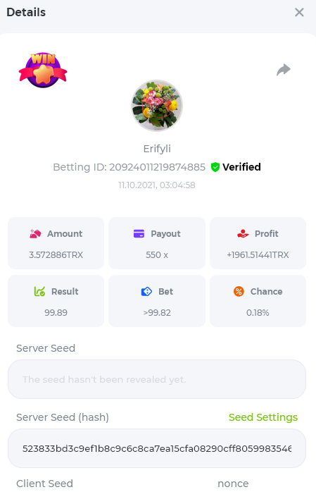 MAMIR-2 Posted October 8, 2021 Share Posted October 8, 2021 (edited) 10x - 36189394487527 20x - 36189394487587 30x - 36189394487591 40x - 36189394487674 50x - 36189394487678 100x - 36189394484462 150x -36189394484862 200x - 250x -36189394485610 330x -36189394486046 450x -36189394486446 550x -36189394486775 660x -36189394489747 990x -36189394490425 1100x -37189394491307 1237.5x -36189394491340 1650x - 1980x - 3300x - 4950x - 9900x when i set on 40x it becomes 39.9x and when i put 250x it becomes 247.5x please update it.... auto betting is good..... total post=15 1 hour ago, digitaldash said: Happy Friday all! Here's a weekend challenge for you: The next 5 contestants to post two exact rolls back to back will receive an extra $20 prize (ie. 33.33 and 33.33 results right after each other). It's something you can look for while you're going for the challenge payouts, no need to hunt separately Nonce of the two bets must be right next to each other, for example nonce 5 and nonce 6. You may not change seeds for this. All challenge rules apply. Rolls must be made after I post this. Offer expires the same time as the challenge does. Good luck! what is minimum bet amount.?? Edited October 8, 2021 by MAMIR-2 Link to comment Share on other sites More sharing options...