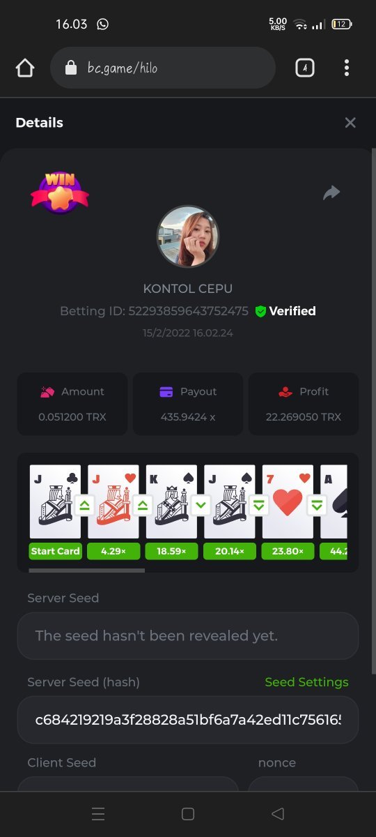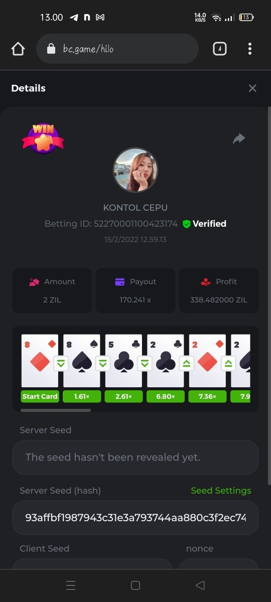 Challenge dengan mencari  total Raihan poin tertinggi di game Hilo