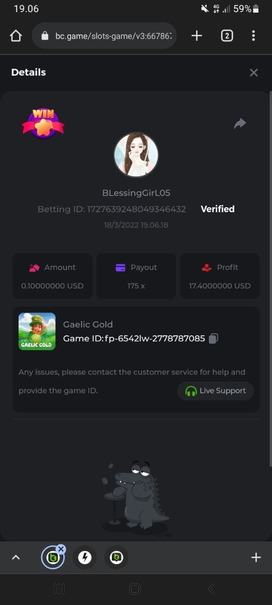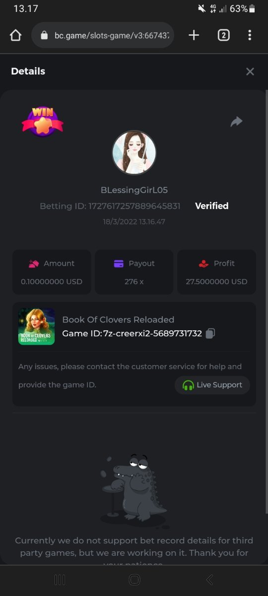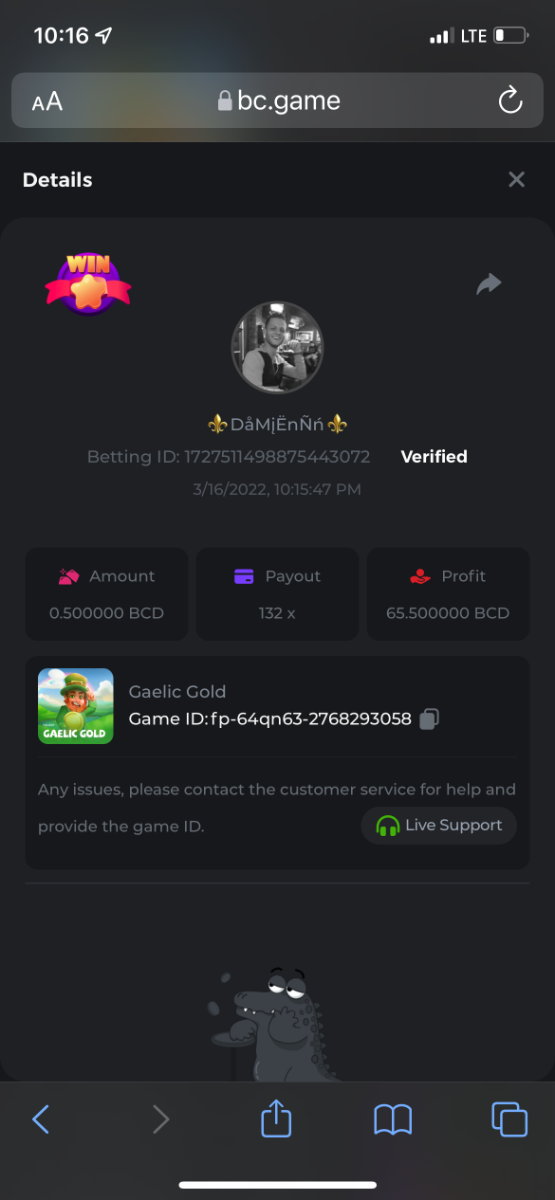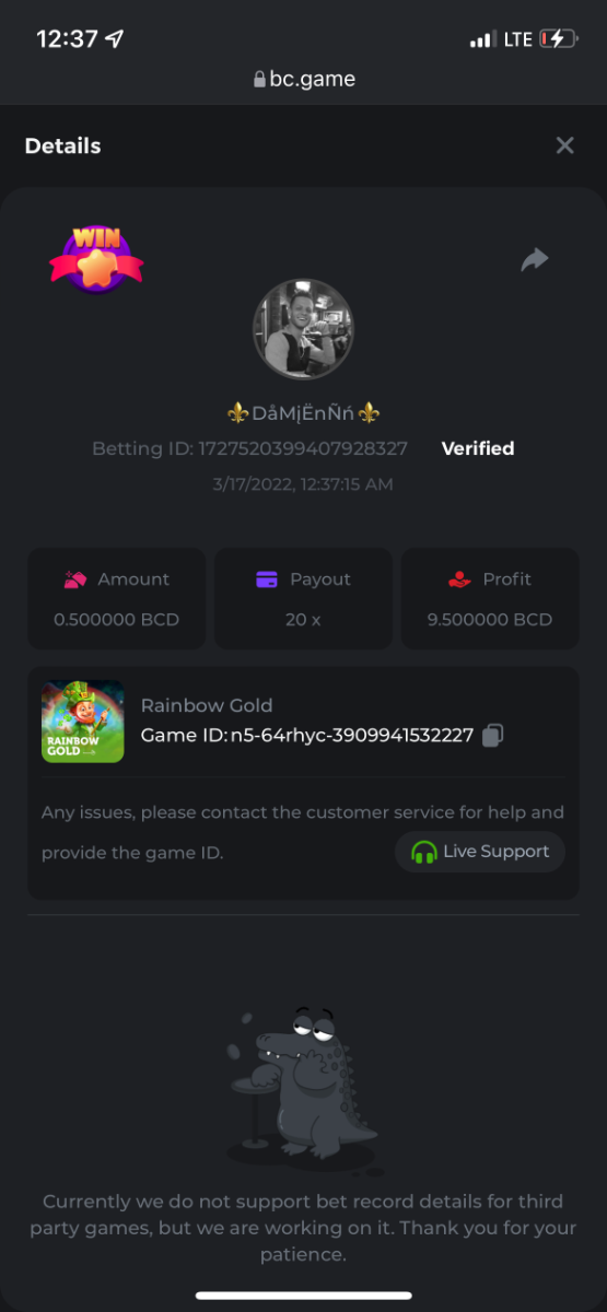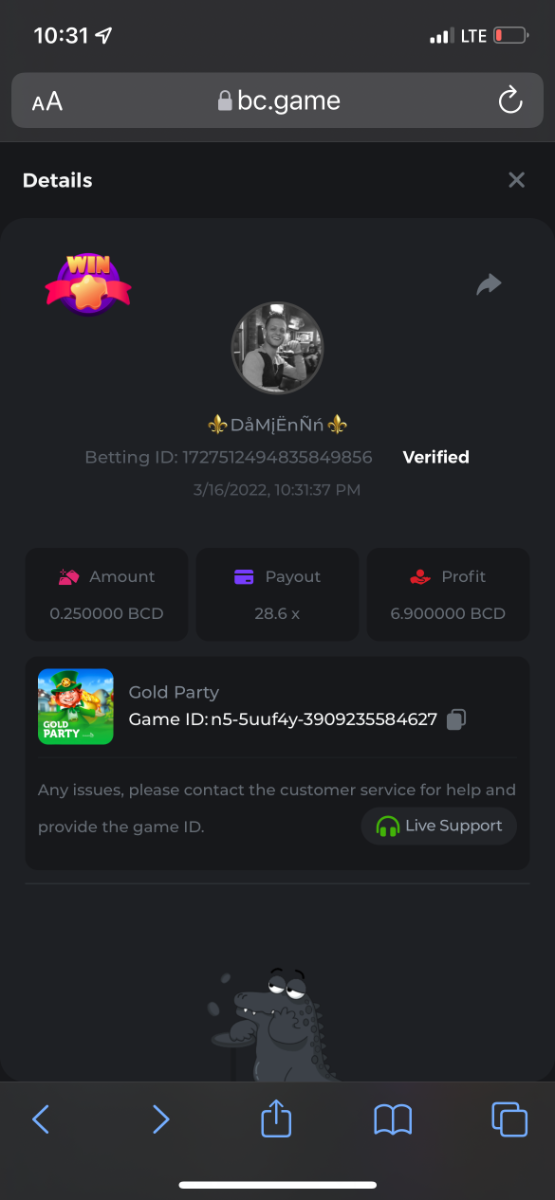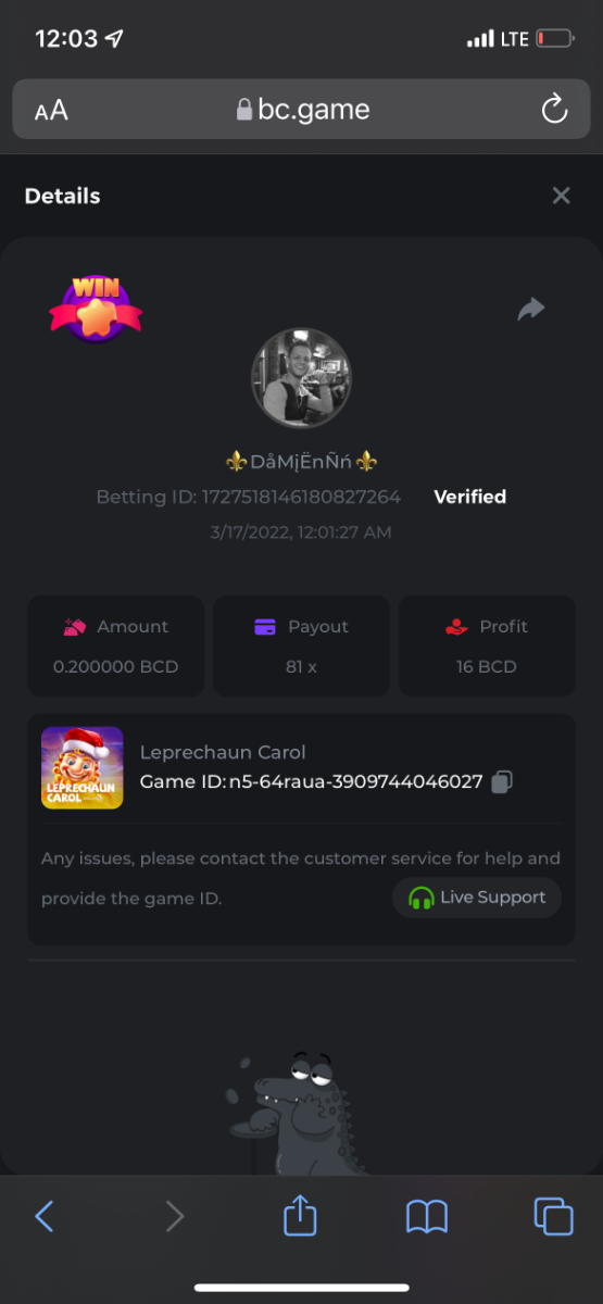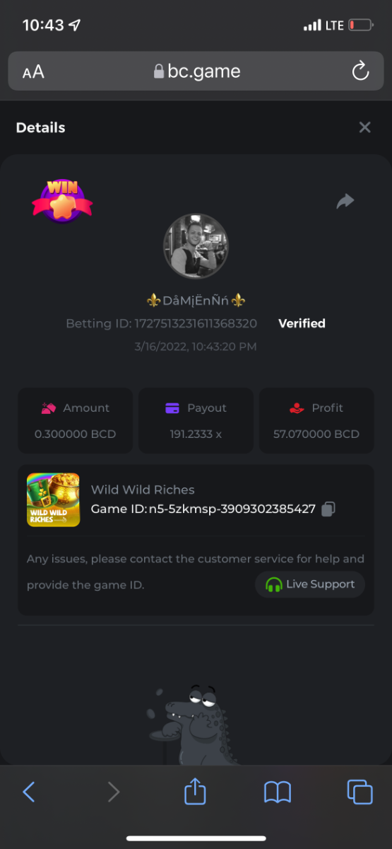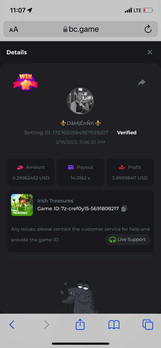 In the same post, upload a screenshot of your win by clicking the game ID WITH VIEW IN USD mode ENABLED (accessible at the bottom of dropdown menu for your wallet up top, and Submit Reply. Done! This way, we can ensure that your bet indeed met the minimum requirement at the time of placing it: