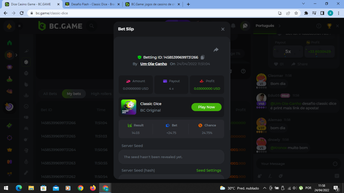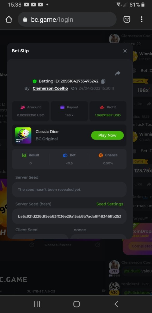 Moderator Mat Posted April 24, 2022 Moderator Share Posted April 24, 2022 (edited) Desafio Flash - Classic Dice Inicio: 23 de Abril 23:30 pm -3 GMT Encerra: 24 de Abril 23:30 pm -3 GMT "This challenge is only for the people from the Portuguese room" Confira abaixo os termos e condições completos e como você pode ganhar essas recompensas! Vamos explorar suas habilidades com os dados. Um dado não gira a menos que alguém o jogue. Qual é o desafio? Busque a maior sequência de vitorias em nosso Classic Dice (pagamento 4x) VIP mínimo Não há nível VIP mínimo Pagamento mínimo Multiplicador mínimo é de 4x Mínimo da aposta Equivalente a US$ 0,01 Moedas elegíveis Todas as criptomoedas são elegíveis (exceto JB e BCL) Prêmios disponíveis 1º lugar ....... $5 2º lugar ..... $3 3º lugar ...... $2 Como entrar: Para participar, copie o link da aposta que deseja enviar. Depois de copiá-lo, cole-o como resposta a este tópico da seguinte forma: Link: https://bc.game/sd/?sd=10J3J6TN8BT15F Na mesma postagem, faça o upload de uma captura de tela de sua vitória clicando no ID do jogo COM VISUALIZAÇÃO NO modo USD ATIVADO (acessível na parte inferior do menu suspenso da sua carteira na parte superior. Dessa forma, podemos garantir que sua aposta realmente atendeu ao requisito mínimo no momento da colocação: Link: https://bc.game/sd/?sd=10J3J6TN8BT15F Por favor, combine todos os seus hits em um ÚNICO post. Edite sua postagem existente para obter hits adicionais, não crie uma nova postagem. Uma (1) entrada por família . Qualquer pessoa encontrada com multiconta será desqualificada deste desafio, bem como de todos os desafios futuros. As apostas devem ser feitas durante a janela de tempo especificada acima. Este encadeamento será bloqueado automaticamente quando o período de tempo terminar. O não cumprimento das instruções resultará na nulidade do seu envio. Os pagamentos serão feitos dentro de 72 horas após a conclusão do desafio, por favor, seja paciente, prometemos que não esquecemos. Os prêmios serão pagos em BCD. Boa sorte!!! Edited April 25, 2022 by Edu05 1 Link to comment Share on other sites More sharing options...
