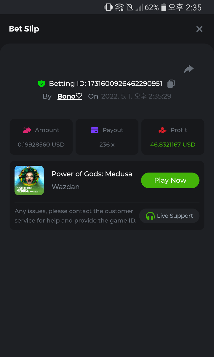 BCGame_POP Posted April 29, 2022 Share Posted April 29, 2022 $2k Wazdan Weekend Multiplier Battle We are hosting this exclusive event for our slot players on the platform for the weekend. Get the best possible multiplier on the highly acclaimed Wazdan Games listed below. All eligible participants will get the prize, hop in your bets within the next 72 hours. Eligible Games: Win the highest multiplier on the Wazdan games listed below 1. Power of Gods: Medusa 2. Jelly Reels 3. Hot Slot 777 Crown The highest multiplier reached in each game will be added together and counted as total points. Bonus buys are allowed. If the player submits multiple winning entries for the same game, the entry with the highest multiplier will be valid. Minimum VIP Tier Must be VIP04 or higher in order to enter this event. Minimum Payout Minimum payout to qualify is 10x (in any game) for a valid entry. Minimum Bet Size Power of Gods: Medusa - $0.1 Jelly Reels - $0.1 Hot Slot 777 Crown - $0.2 Eligible Coins All cryptocurrencies are eligible (excepting JB, and BCL). Free Play Mode is not valid for this event. Prize Pool & Reward Breakdown The winners will win a share of the prize pool based on the detailed ranking below. All other participants who complete all minimum requirements will receive a 35% share of the total prize. How to Enter Access the game to select your Bet ID, click on the Share icon (↷) and then Copy link. Return to the topic, paste the link in the field "Reply to this topic..." E.g.: https://bc.game/sd/?sd=10JHVKPTK0BIFN In the same post, upload a screenshot of your win by clicking the game ID WITH VIEW IN USD mode ENABLED (accessible at the bottom of dropdown menu for your wallet up top, and Submit Reply. Done! This way, we can ensure that your bet indeed met the minimum requirement at the time of placing it: https://bc.game/sd/?sd=10JHVKPTK0BIFN Additional Rules: Please combine all of your hits together in a SINGLE post. Edit your existing post for additional hits, don't create a new post. Bets must be posted within 24 hours of placing bet in order to keep things fair for everyone. Bets must be made during the specified time window stated above. This thread will lock automatically when the time period is over. One (1) entry per household. Anyone found attempting to win multiple prizes will be disqualified from this challenge as well as all future challenges. Failure to follow instructions will result in your submission being null and void. By entering this challenge, you acknowledge that BC.Game has the final decision on results and placement. Payouts will be made within 48 hours of challenge completion. Prizes will be paid out in BCD. Link to comment Share on other sites More sharing options...