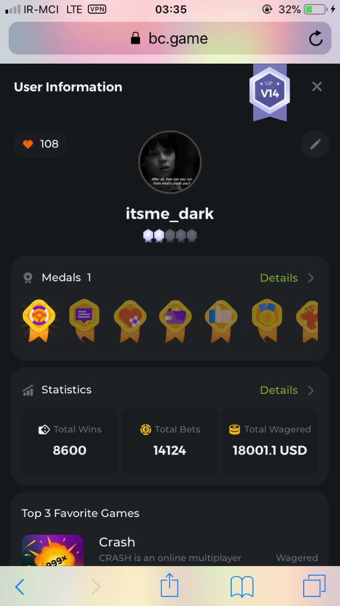 Majorwins_welp Posted June 15, 2022 Share Posted June 15, 2022 aye mine would be when i won 1300$ in btc with a 900+ multi on mines level 17 by getting 5 diamond spots then immediately after that getting a 1000+ multi on level 11 for getting 9 diamond spots 50 cent bet made another 500+ on top of the 1300 Link to comment Share on other sites More sharing options...